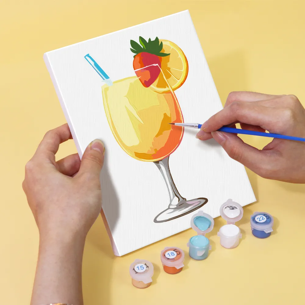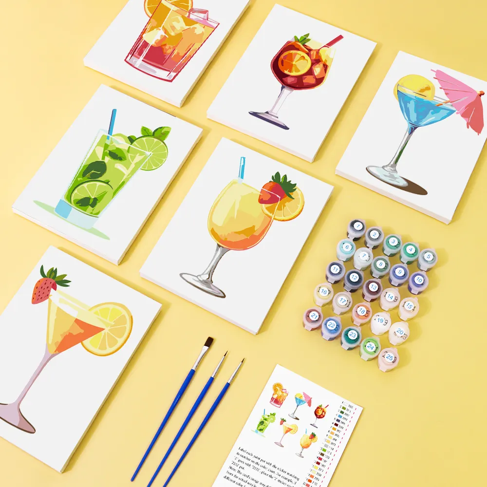 The “Refreshing Cold Drinks” Mini Paint-by-Numbers set is the perfect choice for hot summer days. Colorful glasses, ice cubes, and fruity details make this motif lively and pleasantly fresh. Whether for a creative break, as a gift, or for decoration – this compact set delights beginners and advanced painters alike. Included: a pre-printed mini canvas, vibrant acrylic paints, and matching brushes for instant painting fun.